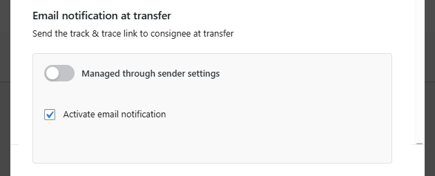 - Activate email notification – Enable this option to automatically send a track & trace link to the consignee when the shipment is transferred.