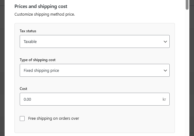 - Tax status – Choose whether the shipping cost is taxable or not.